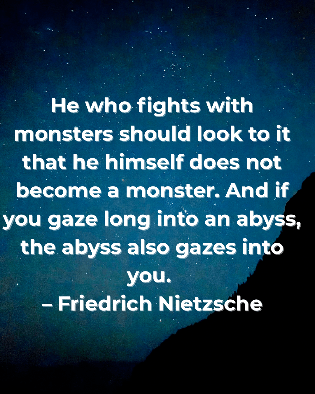 “He who fights with monsters should look to it that he himself does not become a monster. And if you gaze long into an abyss, the abyss also gazes into you.”