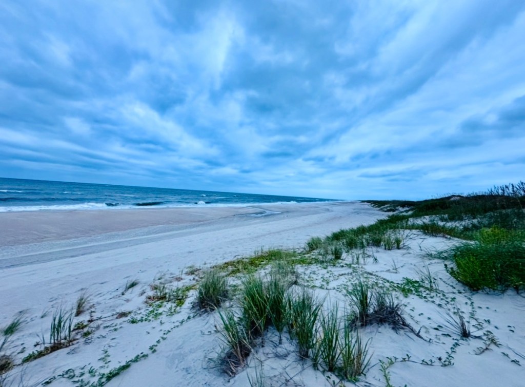 Landing on Ocracoke, we pitched our tent at the National Park Service’s beachside campground, nestled among dunes and sea oats. We dove into the warm Atlantic, letting waves wash away the mainland’s hustle, just as we did on our first trip. Unlike then, we skipped the cemetery and ponies this time, focusing on sandy bliss. I went back up to Sand dunes to see the full moon above the ocean at night, and it was magic!