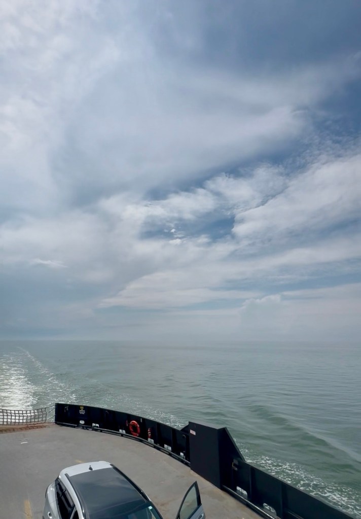 From Beaufort, we boarded the 2.5-hour Cedar Island–Ocracoke ferry, a breezy journey across the Pamlico Sound. We wandered the decks, sea air in our lungs, and spread a picnic in the open upstairs lounge—sandwiches, salty chips, and endless ocean vistas. It was a joyful repeat of our first ferry ride, setting the stage for Ocracoke’s charm.