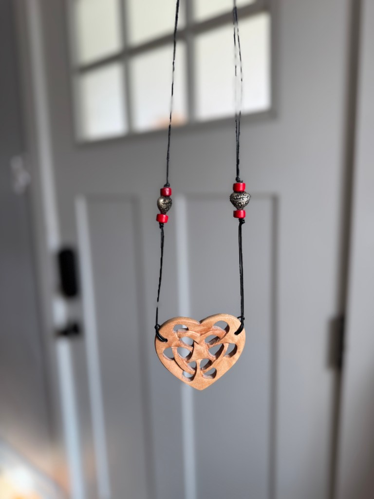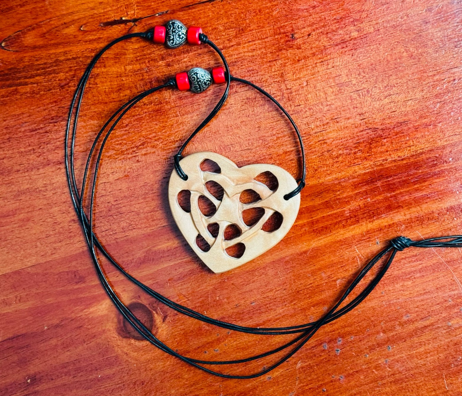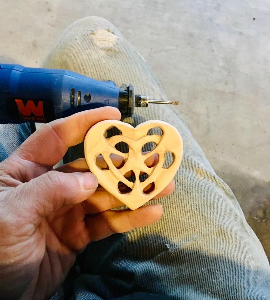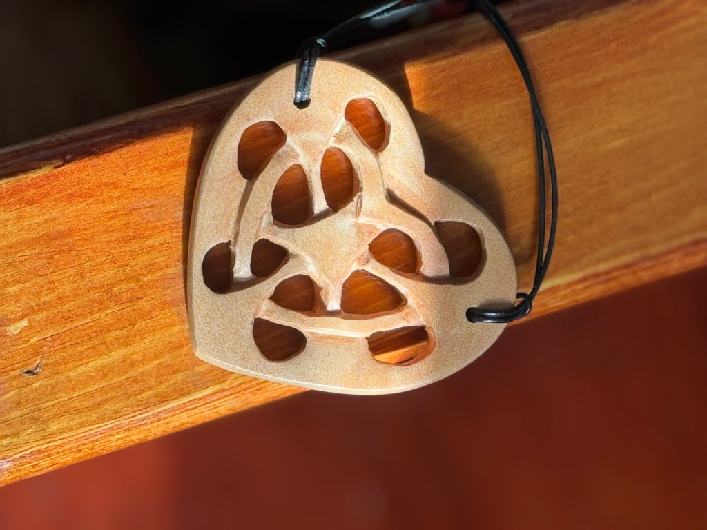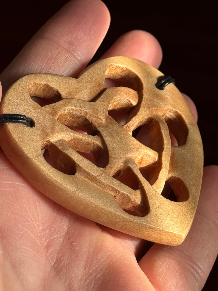 I started this years ago, back when carving was my way to unwind. I’d sketch ideas on napkins or the back of receipts: knots, leaves, symbols. One day I grabbed a leftover cutoff from a shelf project—soft pine, free, forgiving—and drew the design in pencil. Two hearts, interlocking. Simple. Strong. I cut the outline with a jigsaw, following the line as close as I dared. Then I used a Dremel with a small carving bit to rough out the channels between the hearts. After that, it was all sandpaper—until the surface felt like polished stone. That was as far as I got. I didn’t know who it was for. Life got busy. The piece went into a drawer, then a box, then the back of a shelf. It waited.