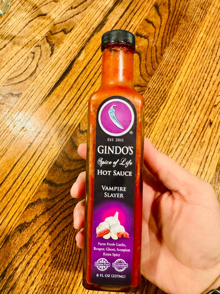 I decided to add sautéed mushrooms into the gravy as well as sliced celery. I didn’t have celery seeds but with the fresh celery it added more texture and flavor. I ended up cooking the gravy too long and it was too thick to absorb all the way through the pie. Next time I would make extra gravy and not have it too thick. Also, Gindo’s Vampire Slayer hot sauce, as seen below was super delicious on top!