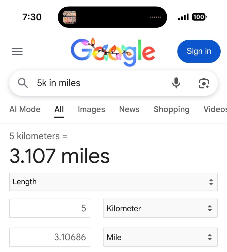 For reference, a 5K is 3.107 miles, and yes—I even Googled it to make sure (I’ll include that screenshot too). Something about seeing that number makes it feel more achievable. If you’ve never run a race before, this is your reminder: a 5K is absolutely doable.