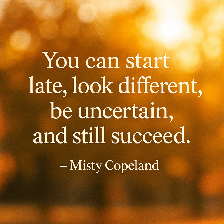 - Quote of the Day: Starting Late, Thriving with Faith by Jared Harding WilsonEmbrace your unique journey, as Misty Copeland shows us that success knows no timeline. Start late, look different, and still achieve greatness with Jared Harding Wilson.